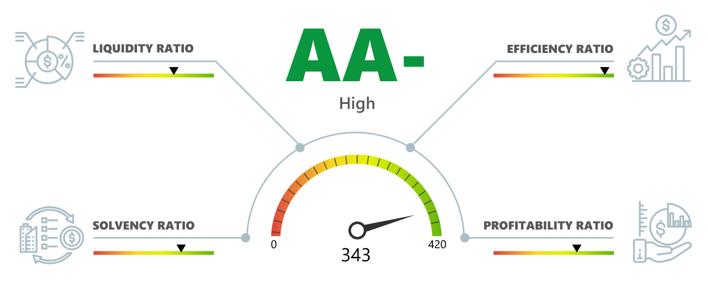 Metodologija CompanyWall Business temelji se na 22 ključna pokazatelja, razvrstanih u grupe likvidnosti, platežne sposobnosti, efikasnosti i profitabilnosti.